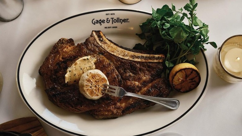 At Gage & Tollner in Brooklyn, the ribeye is grass-fed and dry-aged, and as if that weren't grand enough for you, it's also butter-basted and served with garlic confit and seared lemon. And the steaks are not the only grand thing at Gage & Tollner.