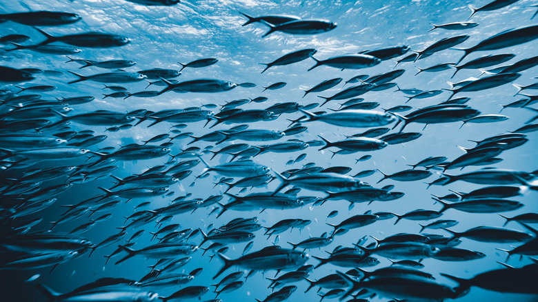 Before big saltwater fish like tuna became fashionable, sushi was mostly made with smaller freshwater fish that were easier for fishermen to catch, like catfish, carp, and freshwater bass. Pelagic ocean fish like mackerel, herring, and sardines inhabit shallow and sunlit ocean waters, reproducing quickly. Saltwater fish like these are more plentiful than big tuna and salmon and thus more resistant to overfishing. Since they're lower on the food chain, pelagic fish require fewer resources to yield the same quantity of protein as fish species higher up on the food chain.