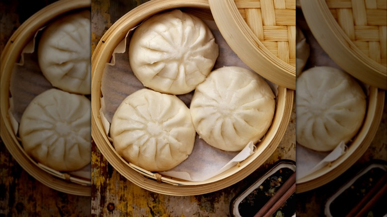 While it may take an extra step to line your bamboo steamer with parchment paper, it often elevates the visual appeal of your dishes, making them more presentable directly in the steamer. But parchment paper also serves several crucial purposes. Without parchment paper, delicate foods like dumplings, fish, or your favorite dim sum dishes can stick to the bamboo steamer's surface, leading to a challenging cleanup. Layering the paper underneath the food ensures that your carefully prepared morsels release effortlessly from the steamer, preserving the integrity and appearance your dishes. Plus, you won't have to worry about scraping or picking off stuck pieces of food when you line the steamer basket with parchment — simply lifting the paper away will take care of most (if not all) of the mess.