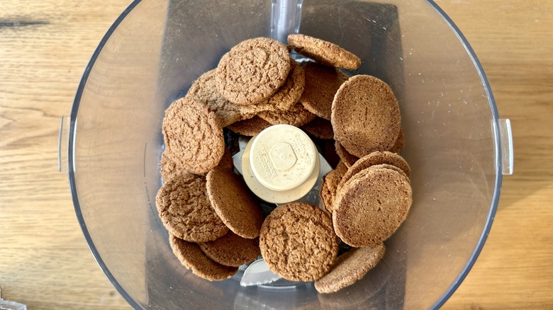 - Use a small measuring cup to press gingersnap mixture evenly into a 9-inch fluted tart pan set over a prepared baking sheet.