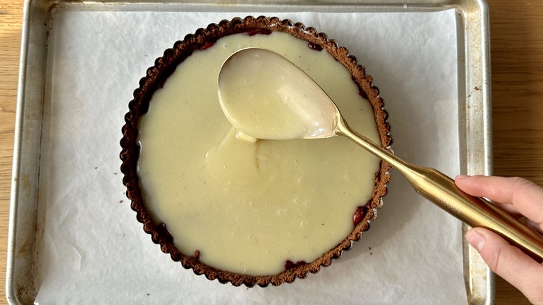 If you're planning on making this tart ahead of time, you should know it doesn't have a particularly long shelf life. Per Rosenhouse, "Store the leftover tart well-wrapped in the refrigerator for up to two days." Fortunately, she notes that you can "freeze the tart for longer storage (up to two months), ideally in slices for quick thawing."