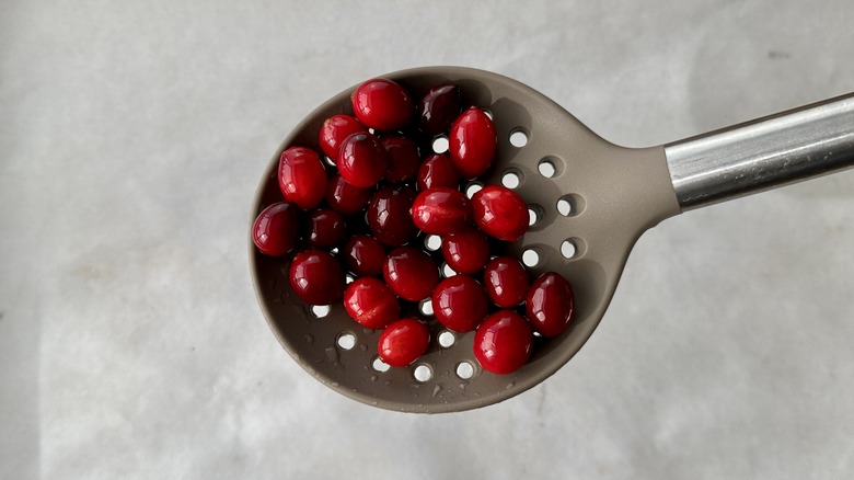 - Using a slotted spoon, transfer the cranberries to the remaining prepared baking sheet. Let sit 10 minutes.