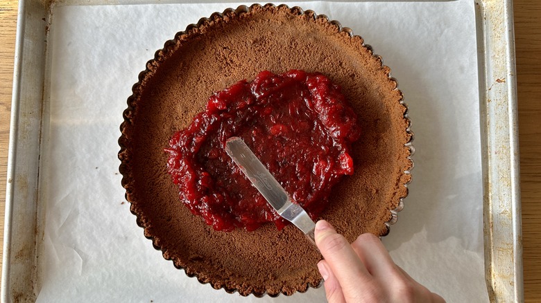 This isn't one of those recipes you can throw quickly together on a whim; though none of the steps is particularly difficult, it does take time to create each component of the tart, not to mention the time spent waiting for the layers to set or chill. However, there are ways to spread the process out to make the recipe more convenient for busy cooks. "If you want to get ahead of the prep for this tart, the gingersnap crust can be made and baked up to two days ahead," Rosenhouse notes. "Store well-wrapped in the refrigerator or freezer until ready to use. The sugared cranberries can be made up to one day ahead, and stored in an airtight container at room temperature."