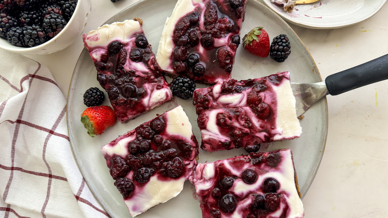Everyone needs a few overnight breakfast ideas in their recipe repertoire for those days when a leisurely sit-down meal just isn't in the cards. Overnight oats and chia puddings are great for this but if you're looking for something different, these nut-free Greek yogurt granola bars are for you. The chewy oats and sunflower seed butter provide a hearty base, offering a satisfying texture that's complemented by the vanilla Greek yogurt and provides a refreshing and cool contrast. While most snack bars include nuts, this nut-free version is delicious and ensures that even those with allergies can get in on the fun.