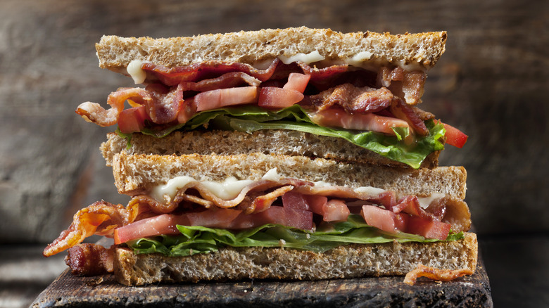 Then, one of the most classic bacon dishes is one typically served at lunchtime: the BLT. What better way to enjoy the bacon-y goodness of the roasted chicken skin than in the famous bacon-lettuce-tomato sandwich? Or, you could use it in place of the bacon often found in a turkey club sandwich or a grilled chicken sandwich. When it comes to dinner, there are quite a few pasta recipes that utilize bacon, such as Tasting Table's chicken bacon ranch pasta, which will taste just as good with faux bacon in its place.
