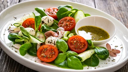 If you're not worried about the extra crunch but want to make the salad more filling, you could opt for some added avocado slices — this will make the meal a bit more hearty and keep it vegetarian. Additionally, you could add tortellini pasta to take your Caprese salad to the next level and make it into a more unique dish.