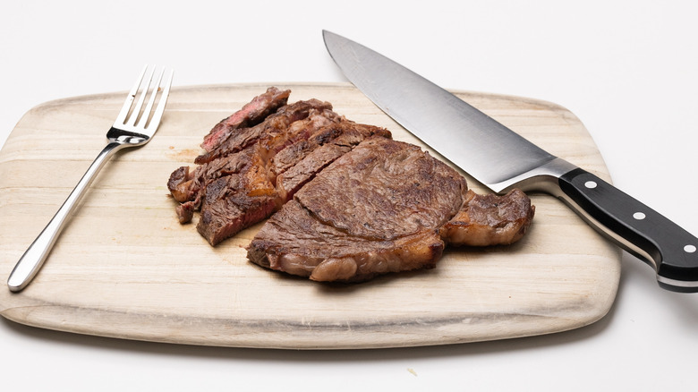 Use a sharp knife to thinly slice the steak.
