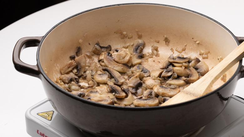 Step 3: Cook the shallots, mushrooms, and garlic