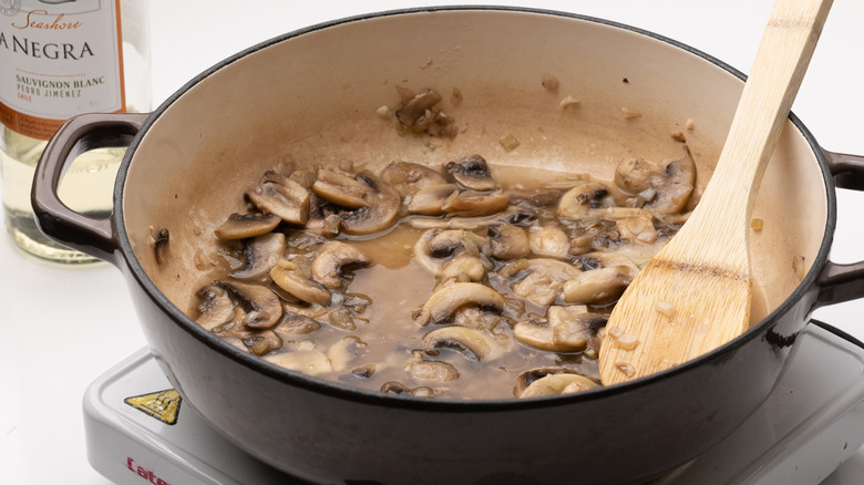 - Add shallots, mushrooms, and garlic and saute for 5-6 minutes until softened.