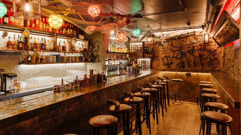 To make the drinks that came out of these and many tiki bars after, you'll need a few simple but important tools. In addition to a shaker, strainer, stirring spoon, and jigger, you'll want a juicer — either a reamer, handheld juicer, or electric juicer if you're mixing drinks for a crowd — and a sharp paring knife and cutting board for those fancy garnishes. And if a frozen drink is calling your name, make sure your blender is plugged in and your ice is cool.