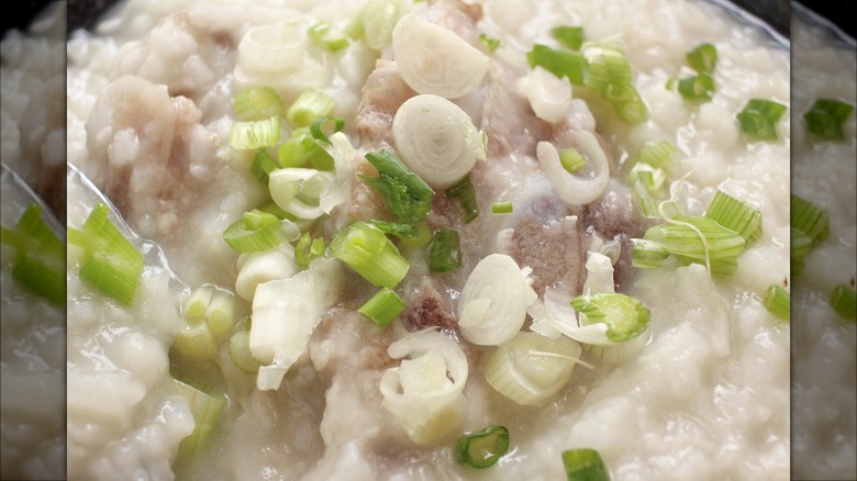Whether you've picked up carrots or zucchini from the store, creating a porridge-like texture is a key aspect of nailing this recipe. Chopping vegetables in sizes that match rice grains can result in a recipe that can be easily scooped up and served. While filled bowls can be garnished with larger pieces of chopped vegetables, shredded chicken, or sesame seeds, the brothy, savory dish is ideally smooth and thick and delivers a consistent texture by the mouthful.