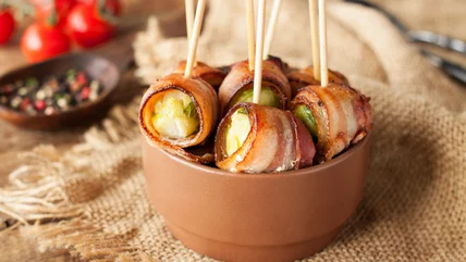 Thin, stretched bacon is ideal for wrapping because the ends will often stick together without the need for skewers and toothpicks to hold them onto the food you're covering, which is a great time saver. You can stretch your food dollars with this tip, too, as you'll need less bacon per piece of wrapped food. As a bonus, the thinner bacon won't overwhelm the taste of what it's covering, allowing all the flavors of your recipe to shine.