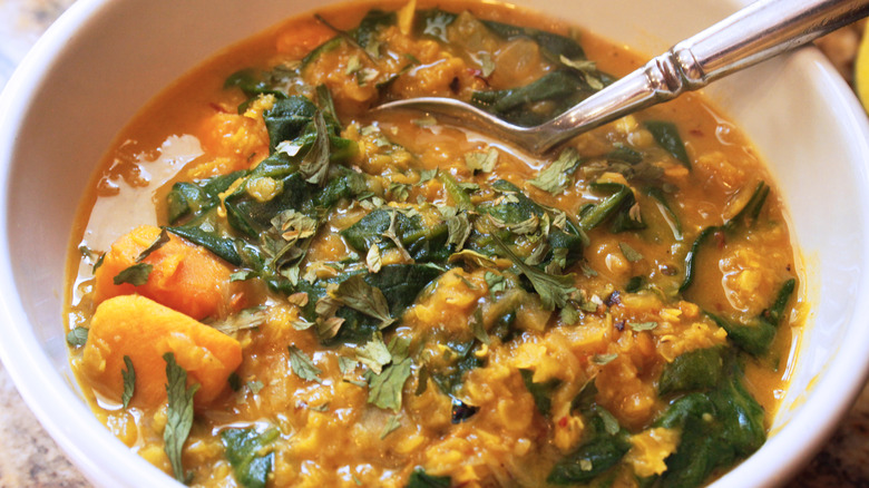 You'll want to double-check that your almond butter is unsweetened before adding a heaping scoop to a savory curry. You don't need lots of it either — just a dollop or two can make a noteworthy difference and introduce richness to your dish. Of course, if you want to infuse more nutty flavors, simply increase the quantity and taste as you cook.