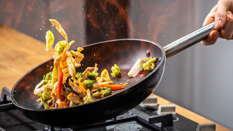 Considering its savory flavor and creamy consistency, almond butter makes a great addition to a quick stir-fry dinner. Start by prepping a sauce that can double as a marinade. Whisk almond butter with other ingredients to achieve your desired flavor profile. You'll need some liquid ingredients like soy sauce and oil, while grated ginger or minced garlic will infuse the mixture with yet more flavor. Lime juice, fish sauce, chili paste, or sriracha are other options to create a delicious meal.