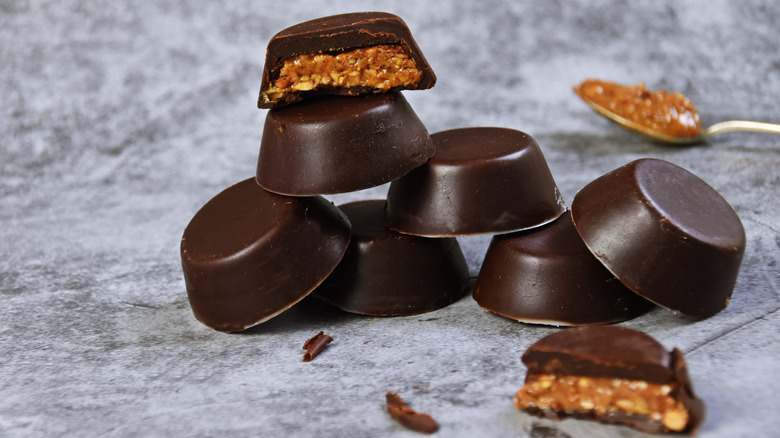 Reese's peanut butter cups are a sweet and salty favorite for many people, but the elevated version of the treat contains almond butter. While some brands sell the product, it's a fun recipe to recreate at home. Use melted coconut oil, cocoa powder, and maple syrup for the chocolate base. Pour the mixture into lined muffin tins, add a dollop of almond butter, and then pour more chocolate over top to cover. Chill the cups until they set and enjoy the delicious pairing of almond butter and chocolate.