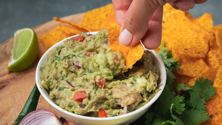 A jar of chili crisp is the fiery ingredient your guacamole needs. The key to adding this ingredient is to be very careful with mixing. The light green color of the avocado can be easily discolored with the red crisp, turning your appetizing bowl into something reminiscent of a brown gloop. Instead, add a scant drizzle rather than mix it in entirely. You can also leave a little puddle of chili crisp on top of your guacamole for easy scooping.