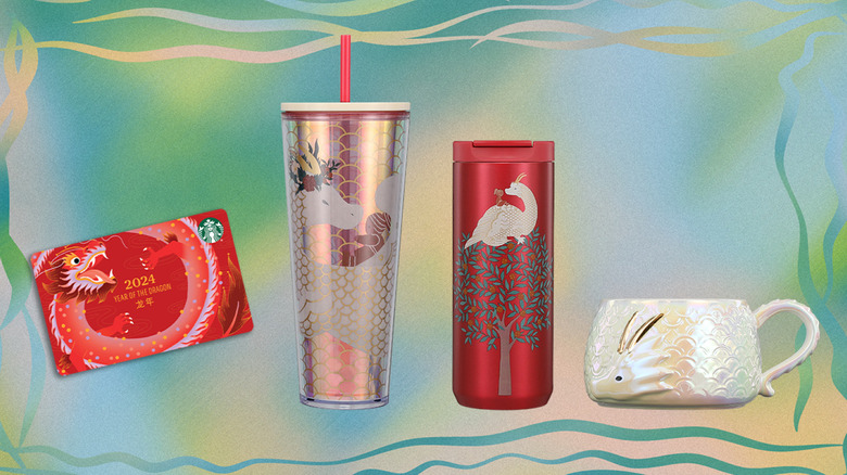 For just about every holiday there's Starbucks drinkware to match, and the first two celebrations of 2024 are about to get a whole bunch of new items. The coffee chain may be loved for its seasonal beverages, like the new winter menu it debuted last week, but for the biggest fans, Starbucks holiday-themed cups are just as exciting. From sunny, floral designs for summer, to crystalline ornament-inspired mugs for the holiday season, there's always a steady drumbeat of new limited-edition Starbucks merchandise that frequently flies off the shelf, and even ends up being sold to collectors on the secondary market. Launching this week are two unique lineups of drinkware for the Lunar New Year and Valentine's Day.