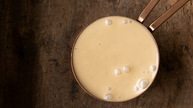 Some recipes will recommend you substitute all of the milk for buttermilk, but this may make it too puckery for your palate. We recommend starting with a half-and-half split between milk and buttermilk, at the most, until you know that you really like the flavor. This dairy product may not be a staple ingredient in your fridge, but you can substitute it for kefir. Just be mindful that this particular hack will result in a thinner liquid.