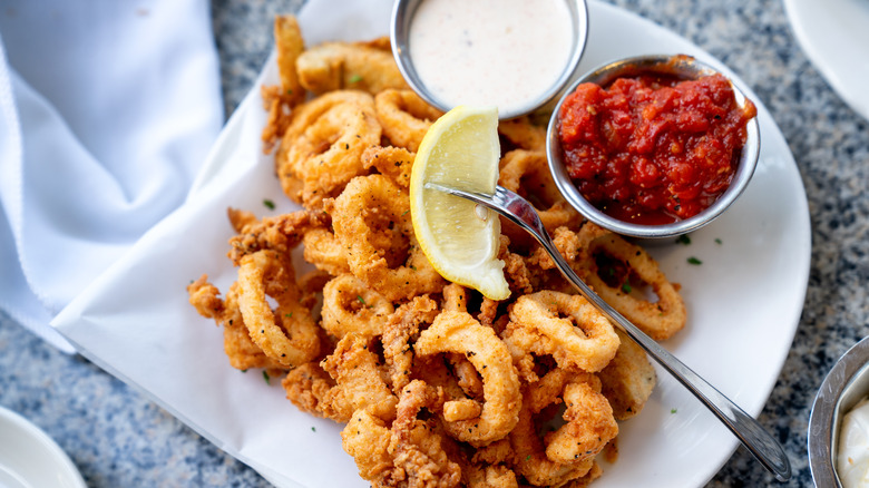 While there's nothing inherently wrong about squid, what we do to it makes it worthy of questioning when encountering it on a menu. Squid was considered bait in the U.S. until about 50 years ago when fishing regulations changed, and fishers had to pivot to find a new species to harvest. Through a careful marketing spin, Americans got familiar with this now ubiquitous squid dish and its preparation by its Italian name, calamari fritti.