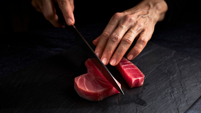 Purse seines, which are large nets used to encircle schools of fish before scooping them out of the water, are used as a fishing method for bluefin tuna, according to the National Oceanic and Atmospheric Administration (NOAA). Purse seines don't discriminate and corral anything inside the net onto the fishing boat. Anything caught unintentionally in commercial fishing is called bycatch, and mortality rates for bycatch are staggeringly high. Bycatch in purse-seining Pacific bluefin tuna includes sharks, turtles, and marine mammals, unintentionally putting pressure on those populations. Another common fishing method for Pacific bluefin is longlining. This method is exactly like it sounds: horizontal lines up to 70 miles long with vertical hooked lines hanging from them. Longlining is even more indiscriminate of bycatch, making both popular methods hard on not only tuna but multiple other species. Putting these factors together makes bluefin a fish to avoid.