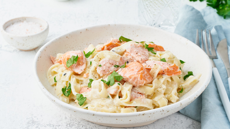 Shrimp and shellfish move quickly, so you don't need to worry much about their freshness. The fish found in these pasta dishes are typically scraps from cleaning and portioning fish for the menu and aren't inherently bad, as they're simply bits of perfectly good fish that aren't big enough to serve as a portion. But they get treated with little respect after cutting. Often not rotated and subject to mistreatment, they're frequently on the verge of spoiling. Cream is a powerful mask for such fish, so kitchens often hide these fishy ingredients under a creamy, cheesy sauce with some grated cheese garnish for additional masking.