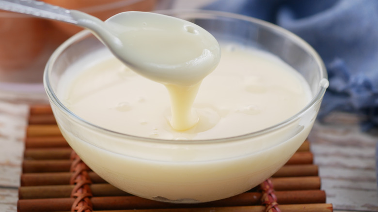 Evaporated milk, on the other hand, is made by slowly heating it to reduce the proportion of water molecules to dairy fat and protein. With over half its original water content eliminated, the decidedly different composition of evaporated milk will resist separation in a slow cooker. It's an equal swap for heavy cream that you can add to the slow cooker along with the rest of your potato soup ingredients at the beginning and let simmer away for hours. Plus, its ultra-rich dairy flavor and already thick consistency will enrich the texture and complement the earthiness of potatoes as well as heavy cream.