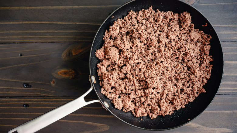 Shrinkage is unavoidable no matter what type of meat you're cooking with — it's a part of the cooking process. That being said, there are ways you can minimize just how much your ground beef shrinks. As we mentioned, meat shrinks when the fat and moisture content evaporates. How much evaporation occurs depends on how hot your cooking surface is and how long the meat cooks. If you're cooking at high temperatures, the meat will shrink faster. If you cook at medium heat, the meat won't shrink as much. It's not just the rate of evaporation that's affected, high temperatures will actually cause more evaporation to occur.