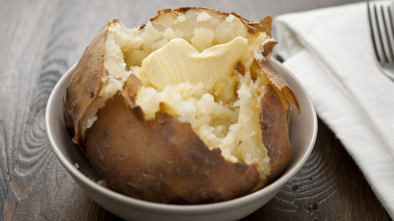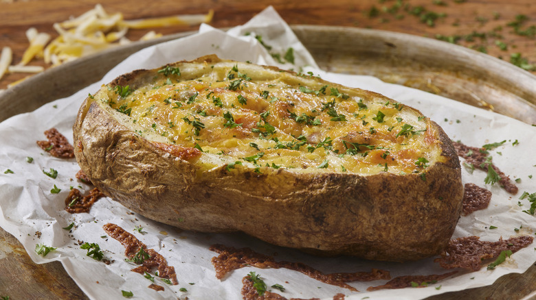 This should come as no surprise — we love a pummeled potato, and we're not talking about mashed. No, smashed potatoes had a moment on TikTok in 2022, but, according to The New York Times, they first came into vogue some 20 years earlier. In short, put a bit of oomph into your baked potato prep and you'll nudge it towards its full potential. Drop it like it's hot.