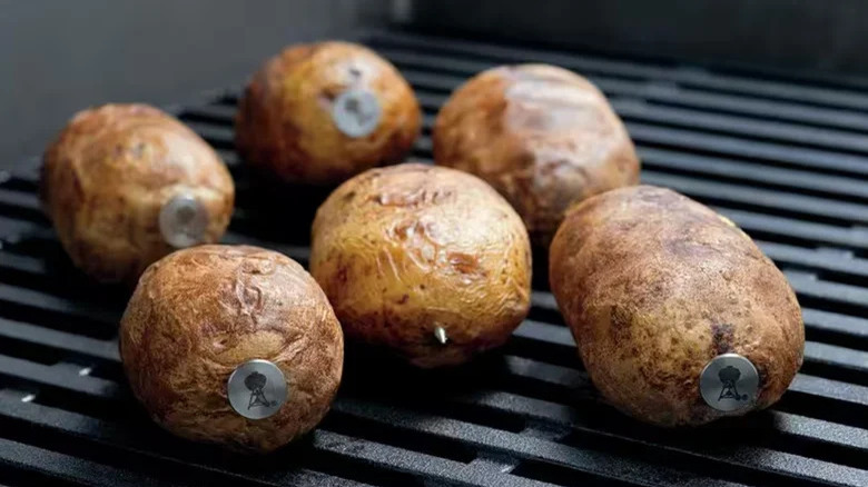 Don't get us wrong, though — twice-baked isn't the same as over-baked. The Idaho Potato Commission suggests a baked potato is done once its internal temperature reaches 210 F. You can use a kitchen thermometer to monitor your potato's interior and whip it out of the oven when it's just right.