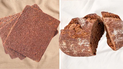 Conversely, American pumpernickel follows a more traditional baking practice, combining wheat with active yeasts to attain a quick rise. The bread is heated to a higher temperature and without a mold, lending a puffed shape associated with a regular loaf of bread. And while the rye flour is still present, it's not such a predominant character. As a result, American pumpernickel still results in a delicious loaf, albeit more similar in consistency to other everyday types of bread.