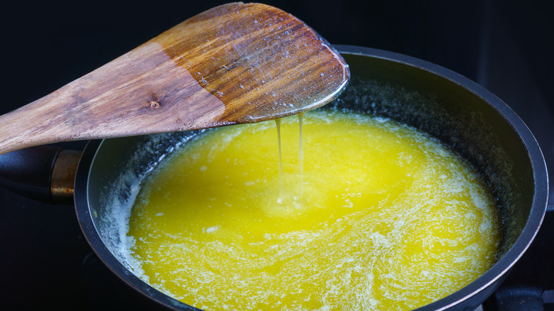 You can use standard sticks of butter to make béchamel, but consider using clarified butter or ghee for a richer result. Clarified butter is standard butter that has been heated and strained to remove water and milk solids. The result is butter without any impurities and a much higher smoke point, making it harder to brown and burn. Ghee is made by continuing to cook clarified butter for longer, making it a more flavorful addition to your béchamel sauce.