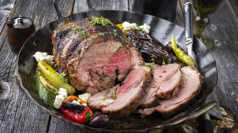 Greek feta's ability to stand up to the intense lamb flavors without overpowering it makes it an ideal pairing. This cheese, traditionally made from sheep's milk and sometimes a bit of goat's milk, offers a refreshingly vibrant taste, Downey shares. "[Feta] is bright and milky with notes of lemon, which pairs beautifully with lamb, particularly if you roast it with plenty of fresh herbs and garlic," she elaborates. Thus, Greek feta, when paired with the subtle sweetness of roast lamb, creates a harmonious blend of sweet and salty tastes. Thanks to Greek feta's lemony notes, there's a pleasant and needed hint of acidity. So, while Greek feta has contrasting flavors to the roast lamb, the combination is complementary.