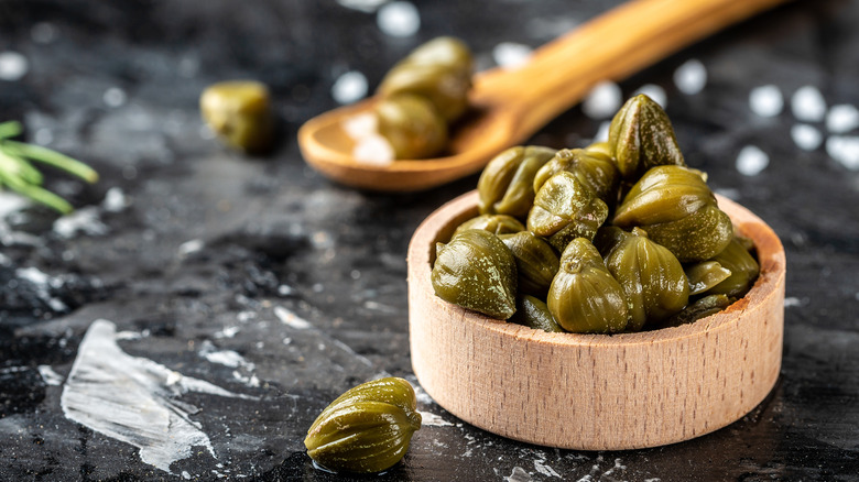 A staple in Mediterranean cooking, brined capers are worth having in your pantry because of the salty, tangy, and umami punch they give to a variety of dishes, from stews and sauces to pasta and salads. They become even more versatile when dehydrated since you can crush dried capers into powder to use as seasoning. Do this with a mortar and pestle or, for a more even consistency, pop the dried capers into a spice grinder. In powdered form, they're ready to be sprinkled over your homemade popcorn for a tasty movie-night treat that awakens your taste buds.