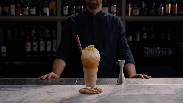 The Glitter Bomb, for example, is as festive and flamboyant as you'd expect — an N/A spin on a sake bomb made with banana soda and a "shot" of strawberry cordial and coconut water dusted with edible glitter. As far as sweeter sips go, this one earns points for playful audacity.