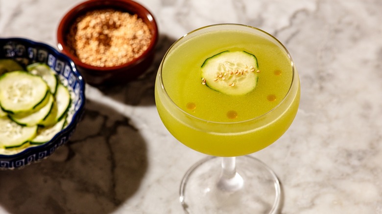 Part Japanese izakaya and part Mexican cantina, Oakland's Good Luck Gato is the kind of place that serves black sesame "Chocotacos" and uni elotes. It's also the kind of place where ABV-free cocktails are as intricate as their boozy brethren. The Green Hill Zone is an Asian-inspired tipple featuring crisp cucumber juice, tangy yuzu juice, lime, soda water, and sesame oil, which rounds it out with a bit of toasty nuttiness.