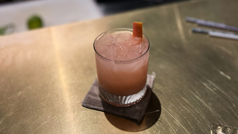 Made with pineapple, non-alcoholic aperitif, lemon, Orgeat, tonic, and sage, the key ingredient is chorizo dust. Beverage manager Dane Davis makes it by turning chorizo, salt, paprika, and lime juice into a paste, which is then dehydrated and powdered for the rim.