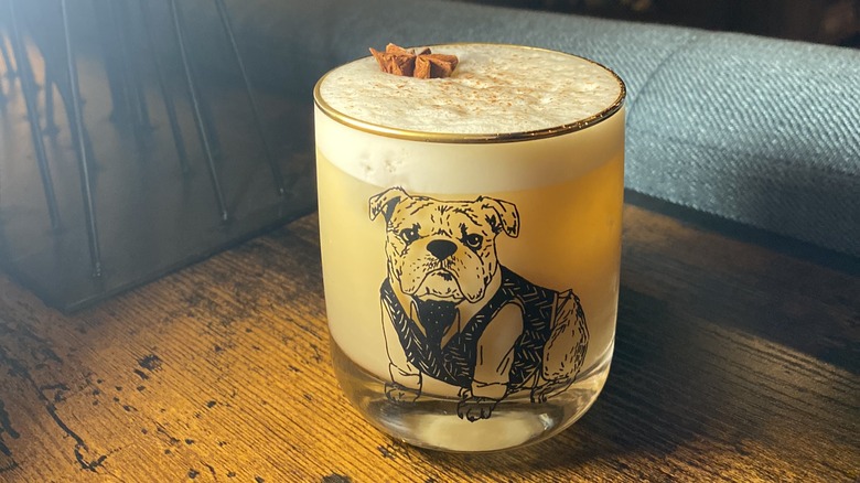 The Love for Love is the perfect New Hampshire cocktail. It's a maple and apple-based creation featuring apple-maple cordial, chilled chamomile tea, and a whole egg for richness and creamy body.