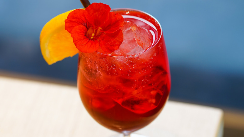 Here, the ruby-red libation uses non-alcoholic sparkling wine and bitter soda for the fizz, along with blood orange aperitif and Seedlip 94, a non-alcoholic spirit infused with hints of cardamom and allspice.