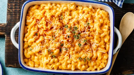When you're ready to reheat the macaroni and cheese, only heat the portion that you want to eat. If you're pulling it out from the fridge, it can be heated in the microwave or on the stovetop. Add a splash or milk or a pat of butter if you're worried about the pasta drying out while reheating, and use this time to add extra cheese, seasonings, or other additional ingredients to spruce it up. For frozen macaroni and cheese, put it straight into the oven or let it defrost in the fridge or on the counter, then warm it up in the microwave or on the stovetop. Just don't forget that you should put it back in the fridge within two hours if you don't manage to devour all of the leftovers.