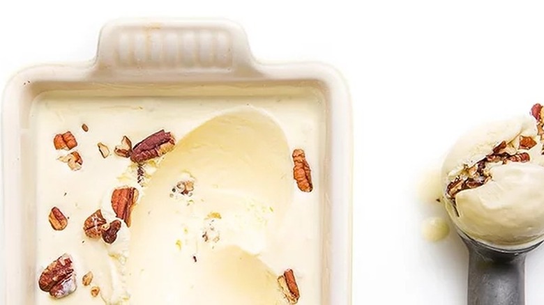 If you crave a decidedly luscious dessert, this brown butter and pecan ice cream does the trick. Start by browning butter in a pan until it's nutty; yes, it'll smell nutty before you even add the pecans. Prepare a custard with egg yolks, milk, and sugar, then combine with the browned butter and heavy cream. Chill the mixture and pour it into a cool ice cream maker to make a soft-serve dessert. Stir toasted chopped pecans into the creamy treat and freeze to firm it up before savoring the first spoonful in all its decadence.