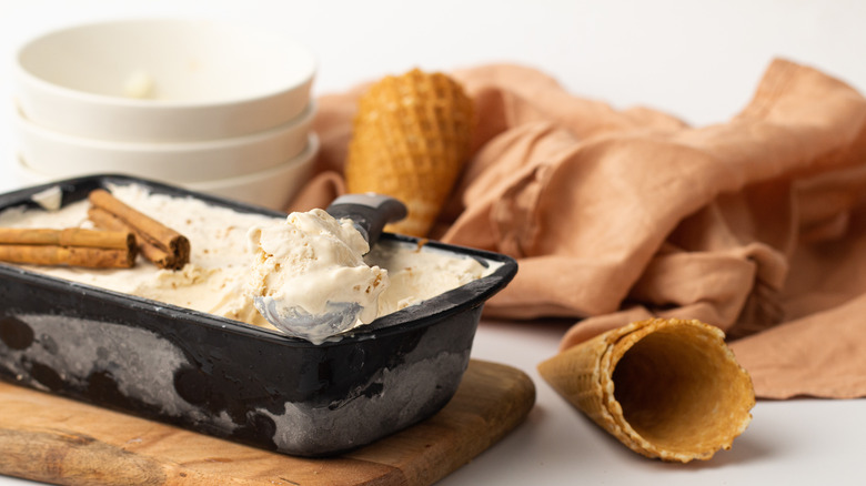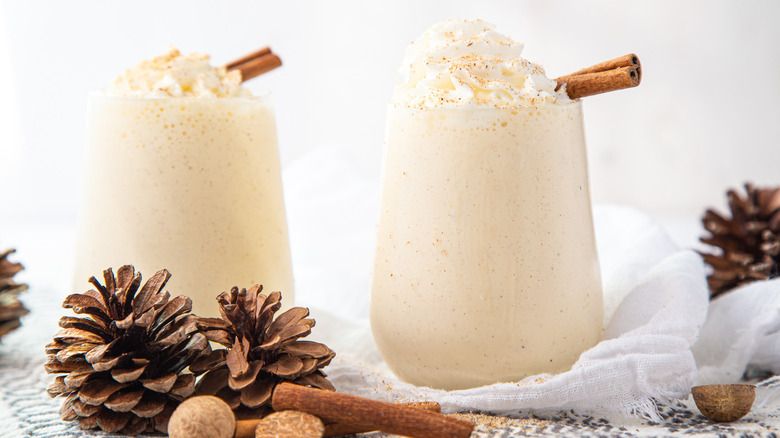 When it comes to eggnog, you don't have to limit yourself to the holiday season. The spiced notes of eggnog make the perfect base for ice cream. Just whip heavy cream with cinnamon and nutmeg until soft peaks form, then add sweetened condensed milk for a creamy and luscious element. Transfer everything to a loaf pan and freeze until set, then serve this richly flavored ice cream in a sugar cone or with a dusting of cinnamon for a delicious treat any time of the year.