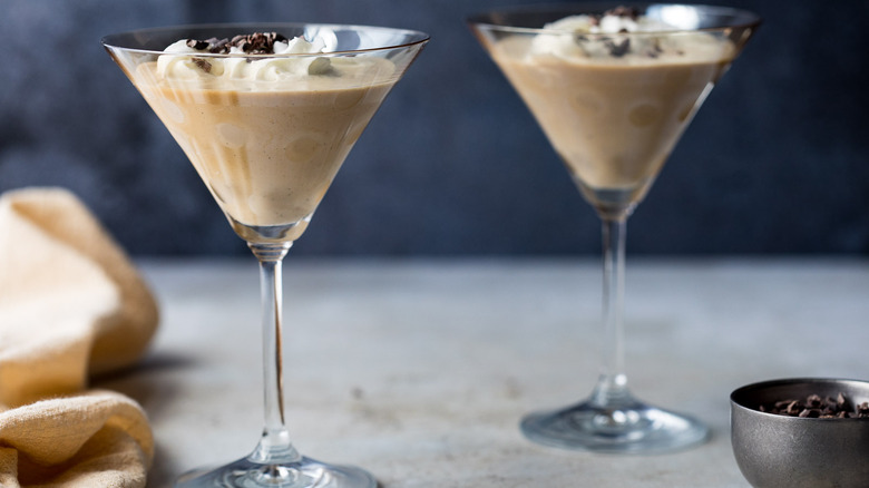 This elegant dessert cocktail will appeal to both your taste buds and your desire for a boozy beverage. Blend cognac (or brandy), crème de cacao, and vanilla ice cream until combined. Pour the drink into martini glasses for a sophisticated touch, and garnish it with whipped cream and a sprinkling of cacao nibs. Finally, take a sip and savor the rich chocolatey notes mingling with vanilla.