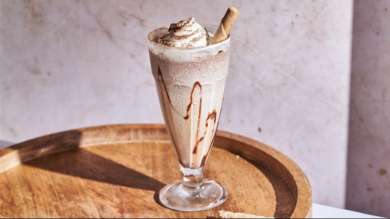 If you hold fond memories of slurping down a vanilla milkshake at your local diner, this recipe will give you deja vu. Blend vanilla ice cream, milk, and vanilla extract, then pour the contents into a tall glass and top it off with whipped cream and chocolate sprinkles. Customize it further with a drizzle of chocolate sauce if you're a cacao lover, or butterscotch or caramel sauce for an irresistibly sweet shake. And don't forget the straw!