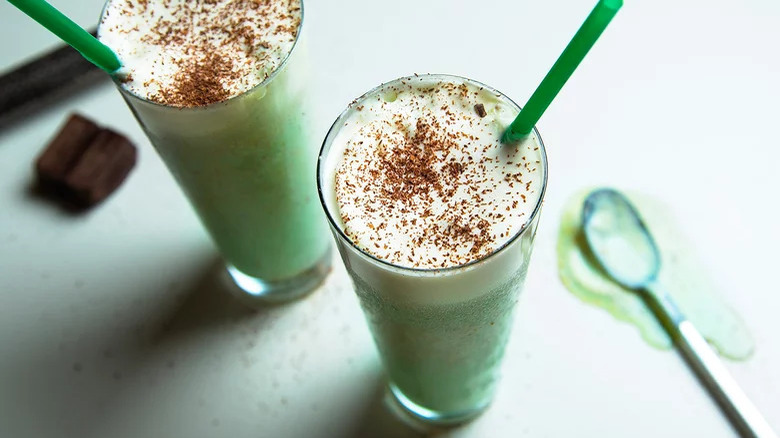 You don't have to wait for St. Patrick's Day to make this shamrock shake. Blend mint extract, pistachio ice cream, and milk, then add tequila for a boozy kick or keep it alcohol-free. Serve the shake in a tall glass with homemade whipped cream, made extra sweet and fresh with the addition of powdered sugar and mint extract. Add shaved chocolate on top to satisfy your sweet tooth from the very first sip.