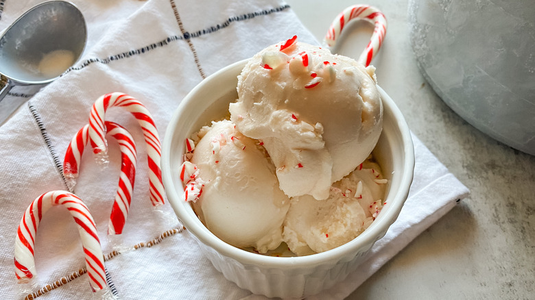 The refreshing notes of peppermint pair well with ice cream, giving it a bright quality that makes it especially delicious when you're in the mood for a sweet treat. Combine whole milk, heavy cream, sugar, vanilla, peppermint extract, and crushed candy cane. Transfer the mixture to an ice cream maker and let it work its magic. To make the lively peppermint flavor pop, sprinkle extra bits of crushed candy cane over your scoop to serve. If you're looking for a chilled dessert to serve during the winter holidays, this is it.
