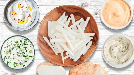 Jicama is the crisp and refreshing alternative crunchy dipper you might be missing out on, and it perfectly complements a variety of dips. This root vegetable is native to Mexico and has a mild, slightly sweet flavor that is similar to a water chestnut but with the crunch of an apple or pear. The relatively neutral flavor of jicama and its large, round shape makes it a great choice for scooping up your favorite dip when you're feeling snacky and only a crispy mouthful will satisfy.