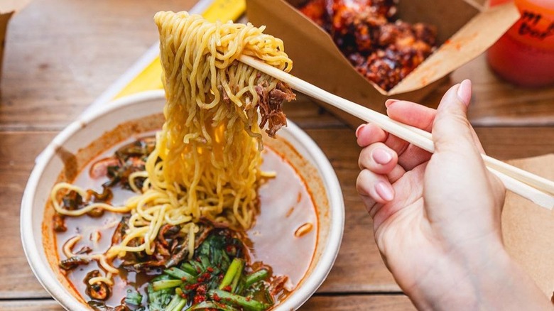 If you're looking for something to drink while watching the chefs hand-stretch noodles behind the counter, try one of the outstanding beers, which include international picks from Japan and China. Hard seltzers with Asian-inspired flavors like yuzu and lychee are also available. For something non-alcoholic, the milk bubble teas, vegan drinks, and lemonades with flavors like lychee and hibiscus are fabulous.