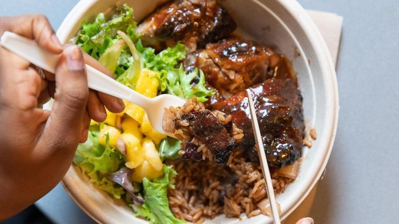 Travel to Jamaica right inside Chelsea Market with a stop at Tings. The beef, chicken, or vegetable patties are great grab-and-go items and pair beautifully with the namesake Tings Caribbean soda. For a heartier meal, try one of the many plates made from proteins boasting authentic Carribean flavors. Juicy jerk chicken or salmon, stewed oxtail, curry goat, and curry vegetables or chicken are served alongside well-seasoned rice and peas with tangy pineapple salsa. These are stellar meals that look and smell almost as good as they taste.