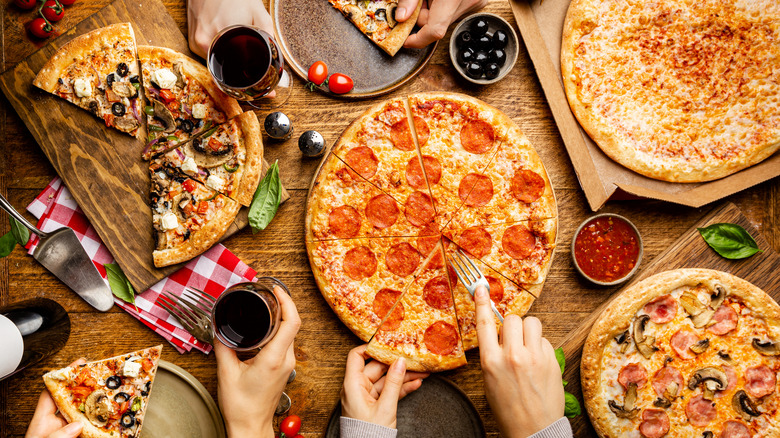 Pizza parties are a fun way to get your besties together without the hassle of cooking an elaborate meal. Simply call up your favorite pizza parlor and order a stack of pies — from the basic but crowd-pleasing Margherita to the fully loaded meat feast — to cater to each and every appetite. But you know what makes hosting a pizza party even easier? Asking for your pie to be "double cut" to create more slices.