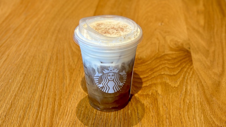 We had high expectations for the Pistachio Cream Cold Brew, considering that we normally really enjoy cold coffees, and Starbucks' cold foams are some of our favorite additions to drinks. However, our experience was somewhat underwhelming. The drink we tried ended up tasting slightly watered down, even trying it right after the barista placed it right at the end of the bar. This drink combines vanilla syrup with Starbucks cold brew and is topped with pistachio cream cold foam, made using the thick pistachio sauce, and finished with a salted brown buttery topping.